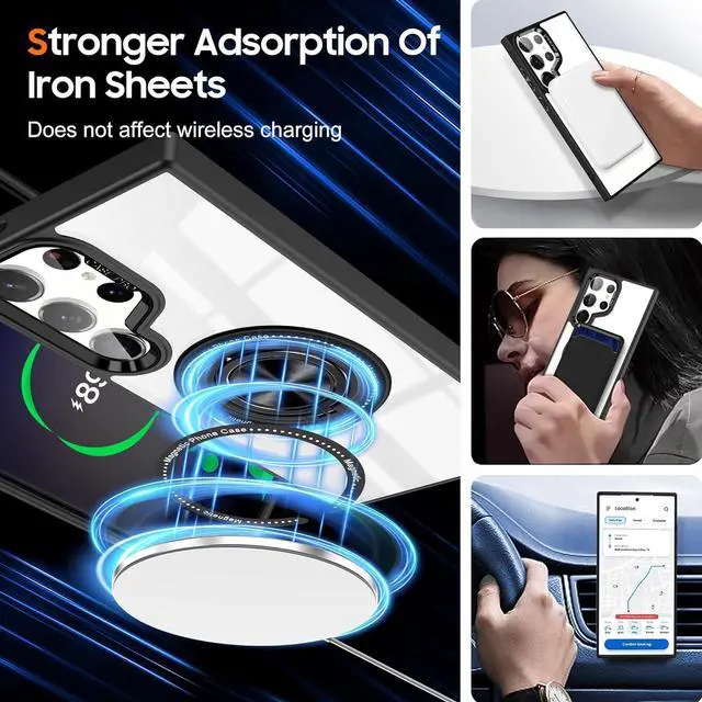 Features: Compatible with Samsung Galaxy S24 Ultra. Crystal clear case provides a slim fitting stylish design and air cushion corner shock protection against damage, keeping your device looking great at all time. Made from reinforced bonded thermopolyurethane and optical grade polycarbonate materials, which makes it flexible enough to absorb punishment but hard enough to resist potential damage. Designed to be slim, lightweight and strong - so you can be assured that this case will add virtually no extra bulk to your phone and will still fit in your pocket with ease. Ring holder for extra drop protection - in more ways than one. The built-it ring features a rotating design to ensure a comfortable grip at any angle. Flip the Ring out and it doubles as a kickstand to take your binge-watching experience to the next level. Raised bezels on the case protects your phone's screen and camera from scratches. Anti-yellow 100% clear case. It withstands the test of time and has breathtakingly high resistance to UV rays, sweat and oxidation of cosmetics. Built-In MagSafe magnetic ring, and your phone is ready for the snap-on/snap-off satisfaction of MagSafe magnetic wireless charging, magnetic ring mounting, and a whole world of swappable magnetic accessories.