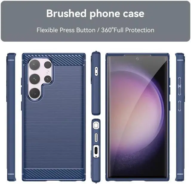 Features: Compatible with Samsung Galaxy S24 Ultra. Featuring a rugged, flexible, textured TPU body and that is tough enough to protect your device, without adding unnecessary bulk. The flexible and robust TPU core features shock absorbing strength allied with a stunning carbon-fiber and brushed metal style finish on the back. Air cushion in all corners for everyday drop-defense. The inner patterns also help deflect shock force and aid heat dissipation. Made from a flexible TPU inner core, the case has been designed with phone safety in mind with a design that absorbs shocks and impacts, keeping your device safe and secure at all times. Built to last and to look good, the case features a textured carbon fiber and brushed metal effect design that accentuates the beautiful design of your smartphone. The textured method offers a more secure grip, meaning it will stand up to a beating from every day wear and tear, but if you have a better grip, you're far less likely to drop your phone. Made from a precision cut single layered piece of TPU, the case fits precisely around your phone for a smooth, contoured fit.