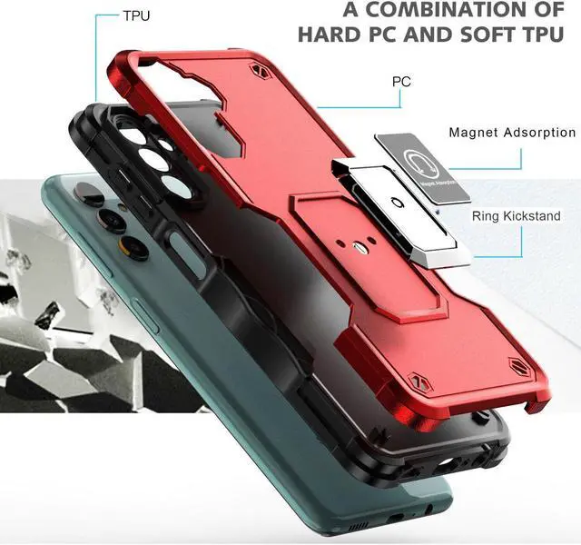 to withstands 4X MIL-STD (810G- 516.6 ), meaning the cases have been dropped at 2 meters with zero damage done to the device. Featuring a robust multi-layered design, the case provides extreme protection for your device. This hard-wearing tough case safe-guards your phone against whatever life can throw at, keeping it secure at all times even in the most extreme of conditions. Grooved Sides - Like a firm handshake with your phone. A soft rubberized TPU inner core tightly grips to your phone while absorbs shock and cushions the phone from drops and impact. Patented hybrid case with ridge polycarbonate hard shell for armor-like protection. Reinforced air cushion corners provide excellent protection where it's most needed. The back of the case has a built-in extremely practical handle, Ring, which can be put on the finger to hold the phone more securely in your hand. Pull the ring out and have a handy viewing stand to comfortably watch your favorite show. Raised front bezel and camera opening prevent scratches to the screen and camera lens. Integrated camera lens bumper protector protects the lens from accidental drops.