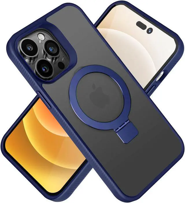 With built-in magnets, this Frosted MagSafe Stand Case is a must-have accessory for efficiently and safely MagSafe charging your Apple iPhone 14 Pro Max. Its raised camera ring protects your camera from damage and the case also features a kickstand perfect for movie viewing.