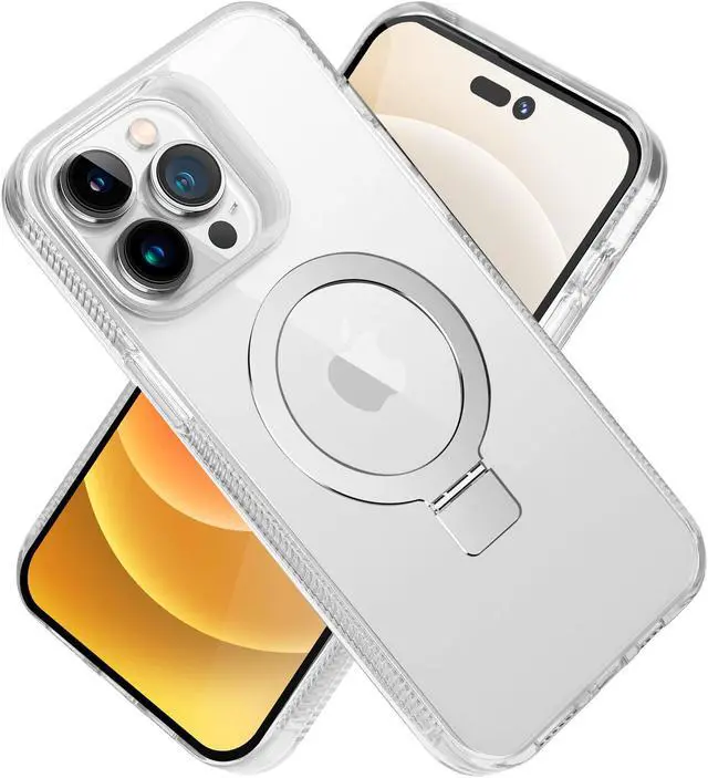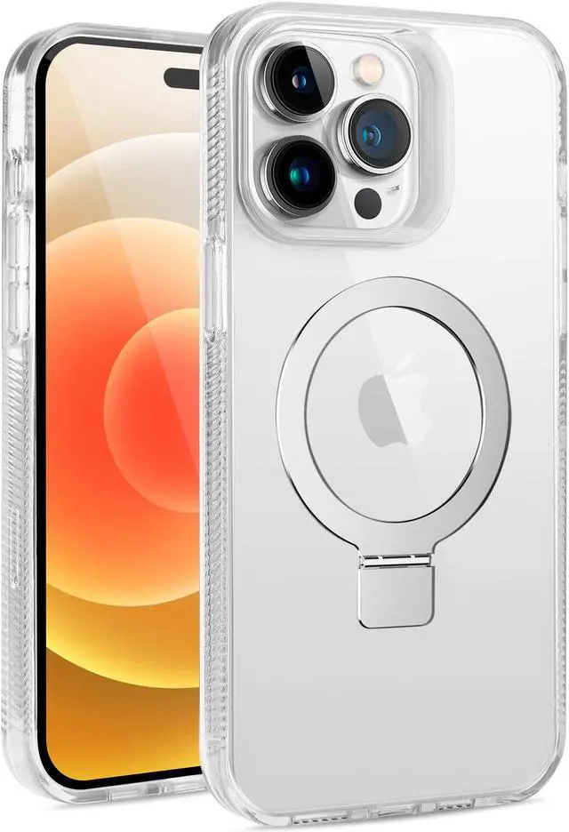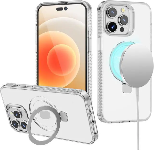 With built-in magnets, this MagSafe Stand Case is a must-have accessory for efficiently and safely MagSafe charging your Apple iPhone 14 Pro Max. Its raised camera ring protects your camera from damage and the case also features a kickstand perfect for movie viewing.