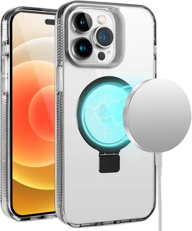 With built-in magnets, this MagSafe Stand Case is a must-have accessory for efficiently and safely MagSafe charging your Apple iPhone 13 Pro Max. Its raised camera ring protects your camera from damage and the case also features a kickstand perfect for movie viewing.