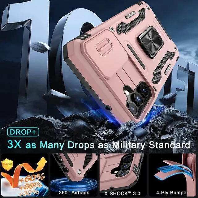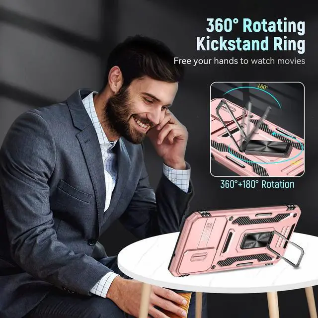 Privacy camera cover slides left or right for total protection. With fluid press buttons included in the design of this case, you can be sure to have a case that will protect your new device perfectly, without interrupting it's every day use. Enjoy magnetic mount compatibility, as the ring holder also functions as a built-in metal plate. Antimicrobial case protection. Precise cutouts provide full access to your phone’ s important features, ports and button.