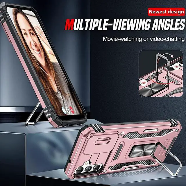 Features: Compatible with Samsung Galaxy A15 5G. Military Standard Shock Test MIL-STD 810G- 516.6 Protection. The case endured 26 drops (at 48in) on all 6 faces, 12 edges and 8 corners of the device and sustained zero damage to the appearance and internal hardware of the phone itself. Made from a special strong and lightweight durable material, providing you with long lasting protection for your smartphone without making it cumbersome. The case features a handy finger loop that keeps your phone securely in hand while on your next adventure and even works as a viewing stand to watch movies. The ring grip folds flat and out of view if you do not want or need it. But if you do, simply pull the loop out, slip your finger through and you have an extra secure grip on your phone. Unique mix material hybrid design. This hard-wearing tough case safe-guards your phone against whatever life can throw your way, keeping your device secure at all times even in the most extreme of conditions. Raised front bezel and camera opening prevent scratches to the screen and camera lens.