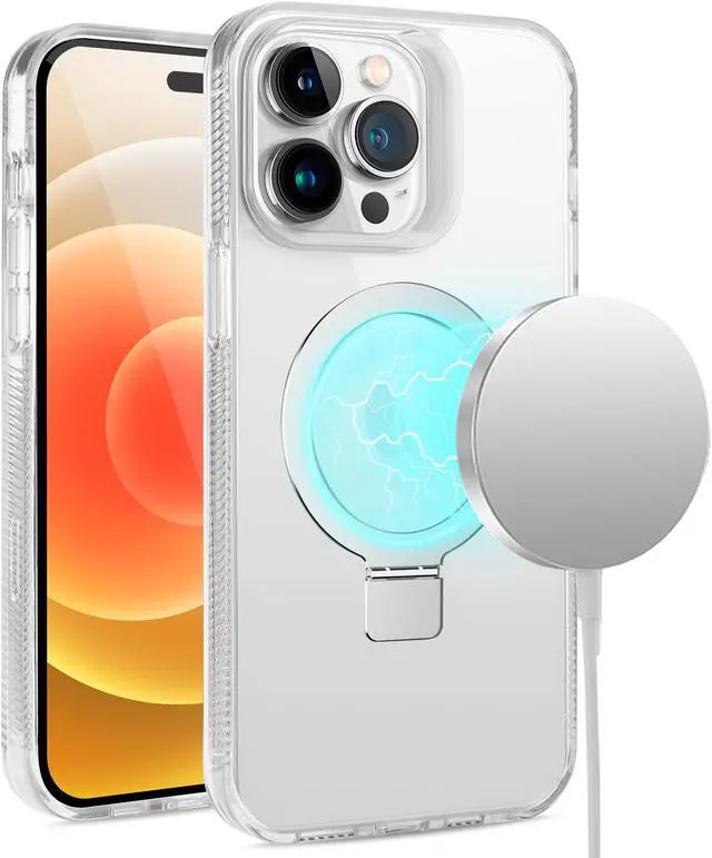 With built-in magnets, this MagSafe Stand Case is a must-have accessory for efficiently and safely MagSafe charging your Apple iPhone 13 Pro Max. Its raised camera ring protects your camera from damage and the case also features a kickstand perfect for movie viewing.