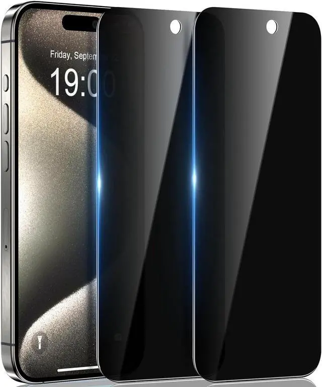 Features: Compatible with Apple iPhone 15 Pro Max. Now you can protect your screen from prying eyes on all sides. A 2-way filter shields your screen, so you’ ve got all-around privacy protection when someone tries to take a peek. Our privacy filter hides your screen when viewed from the side but stays perfectly clear when viewed straight on. Engineered to offer five times the strength of an unprotected screen. Advanced Impact Protection - Protect your smartphone with slim, ultra-strong aluminosilicate glass. Slim Design - The super-thin 0.33 mm glass preserves screen sensitivity to respond accurately to your touch. Feels Like Your Natural Screen - Your finger glides smoothly over the screen protector, just like it does over your device. Intelligent glass composition reacts like the natural screen. Advanced Defense Against Scratches - Rigorous testing proves a hardness rating of 9H - the highest level of scratch protection available. Reinforced edges which prevent chipping to prevent cracks from starting and spreading. Anti-Fingerprint Coating - Engineered with fingerprint and oil resistance, you’ ll have a screen that’ s feeling clean and looking clear.