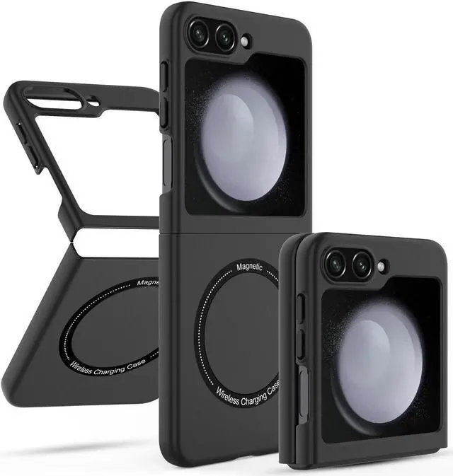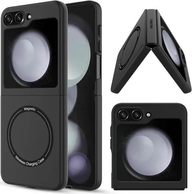 Features: Compatible with Samsung Galaxy Z Flip 5. The cover protects without being a bulky addition to your phone. It is designed with a slim form factor, keeping the sleek design of your phone intact. The cover material is durable even against scratches so it stays safe in your pocket or purse with ease. Protect your phone's corners and exterior to keep it safe from damage. Add protection while maintaining Galaxy Z Flip5 5G's shape and the pocketable compact size. The thin material wraps around your phone and while enhancing the grip so your hands stay comfortable. Raised beveled edge offers front screen protection. The simple and easy installation allows the cover to be attached in no time. simply clip onto the top half and bottom half of the phone individually and away you go. Built-In MagSafe magnetic ring, and your phone is ready for the snap-on/snap-off satisfaction of MagSafe magnetic wireless charging, magnetic ring mounting, and a whole world of swappable magnetic accessories. Features cut-outs for the ports and features including the charging connector and camera.