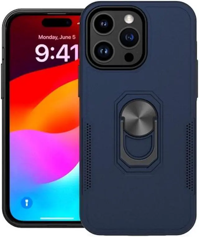 Features: Compatible with Apple iPhone 15 Pro. Extensively drop tested, so you can feel reassured that your device is well protected. Featuring a robust multi-layered design, the Tuff Case provides extreme protection for your device. This hard-wearing tough case safe-guards your phone against whatever life can throw at, keeping it secure at all times even in the most extreme of conditions. A soft rubberized TPU inner core tightly grips to your phone while absorbs shock and cushions the phone from drops and impact. Patented hybrid case with ridge polycarbonate hard shell for armor-like protection. The back of the case has a built-in extremely practical handle, Ring, which can be put on the finger to hold the phone more securely in your hand. Pull the ring out and have a handy viewing stand to comfortably watch your favorite show. Raised front bezel and camera opening prevent scratches to the screen and camera lens. Intuitive button covers for a tactile experience. Enjoy magnetic mount compatibility, as the ring holder also functions as a built-in metal plate. Antimicrobial case protection. Precise cutouts provide full access to your phone’ s important features, ports and buttons.