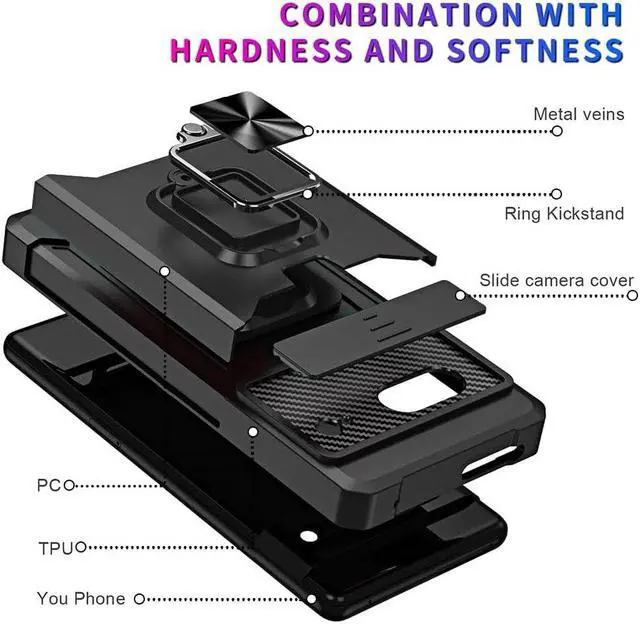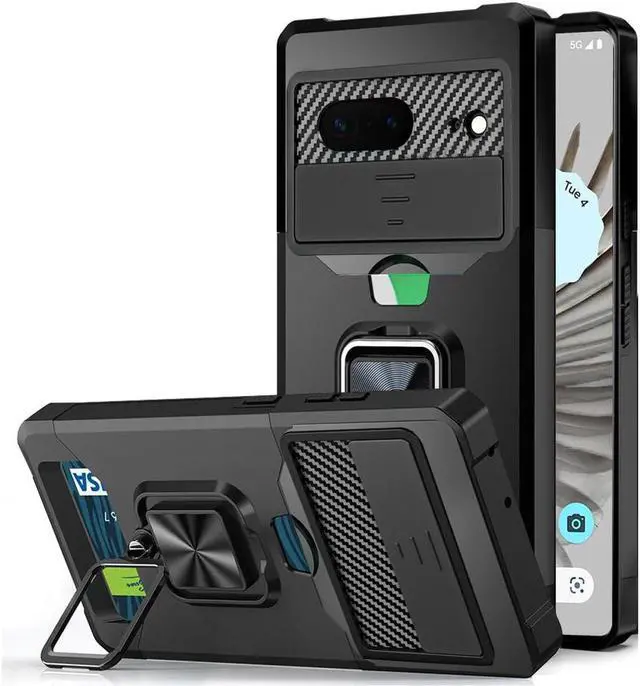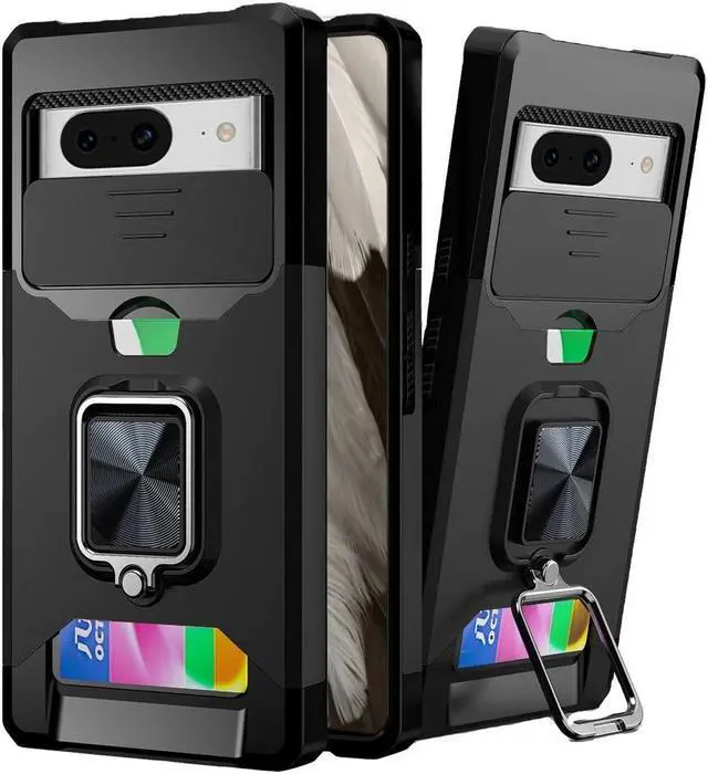 Features: Compatible with Google Pixel 8. Military Standard Shock Test MIL-STD 810G- 516.6 Protection. The case endured 26 drops (at 48in) on all 6 faces, 12 edges and 8 corners of the device and sustained zero damage to the appearance and internal hardware of the phone itself. Stylish, minimalist protection for your smartphone. Crafted from anti-scratch TPU and a super strong polycarbonate frame, the case protects your device while complimenting its sleek aesthetics. Reinforced corners are designed to deflect shock force away from your phone and the corners are the most vulnerable areas of any phone or case. The back of the case has a built-in extremely practical handle, Ring, which can be put on the finger to hold the phone more securely in your hand. Flip the ring out and it doubles as a kickstand to take your binge-watching experience to the next level. With this case, you can leave your wallet at home thanks to the credit card slot featured on the case. Privacy camera cover for total protection. Impact-absorbing TPU perimeter guards the device against bumps and drops. This case is effortlessly easy to install and looks great on your phone.