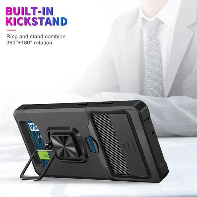 Made for the Google Pixel 8, the Military Grade All-In-One Ring Stand Card Case provides fantastic all-around protection and a finger loop to keep your phone in your hand, whether from accidental drops or attempted theft. Also featuring storage slot for your credit cards, ID and cash.