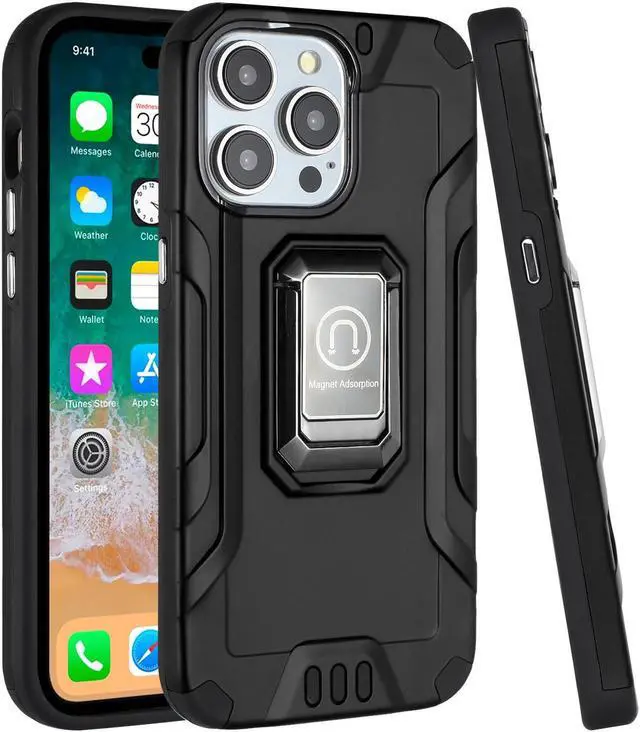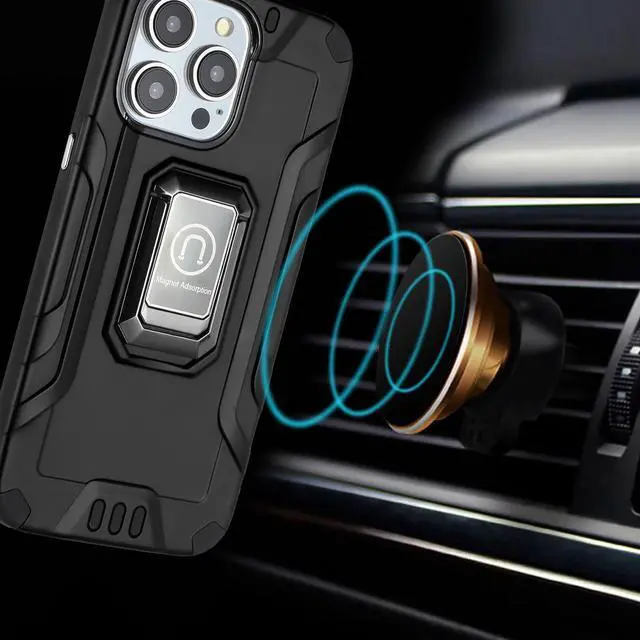 Layer 2: One-piece custom molded polycarbonate shell. The air cushion corners reduces impact force. The back of the case has a built-in extremely practical handle, Ring, which can be put on the finger to hold the phone more securely in your hand. Pull the ring out and have a handy viewing stand to comfortably watch your favorite show. The interior adopts a honeycomb pattern design that absorbs shocks and impacts, also help dissipate heat to prevent overheating. Unique mix material hybrid design provides excellent shock absorption and scratch protection. Raised bezels on the case protects your screen and camera from scratches. Textured grid finishing for improved grip. 9H hardness tempered glass screen protector prevents scratches without compromising sensitivity. Enjoy magnetic mount compatibility, as the ring holder also functions as a built-in metal plate. Antimicrobial case protection. Precise cutouts provide full access to your phone’ s important features, ports and buttons.