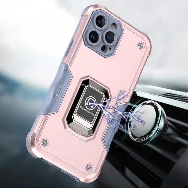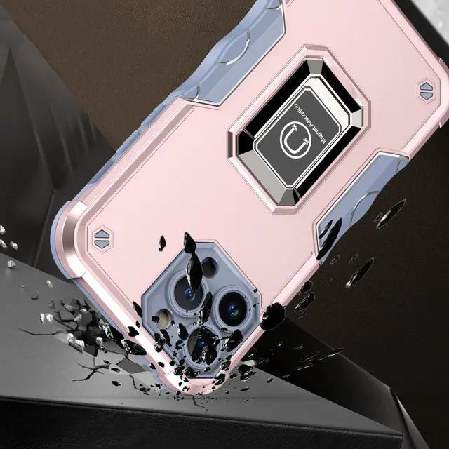 Military Grade Shockproof Hybrid Armor Case with Ring Grip for iPhone 15 - Rose Gold