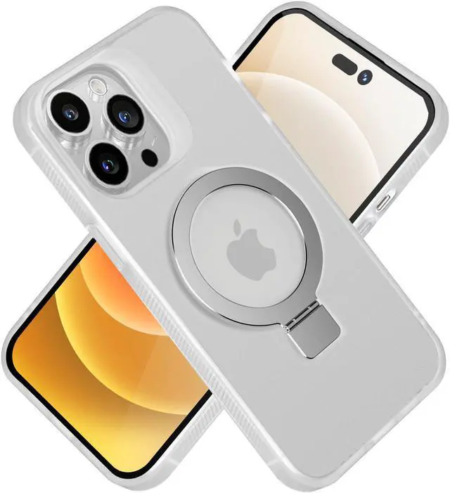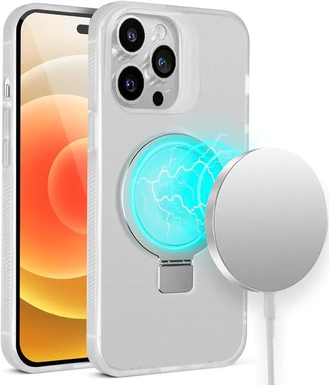 With built-in magnets, this Frosted MagSafe Stand Case is a must-have accessory for efficiently and safely MagSafe charging your Apple iPhone 13 Pro Max. Its raised camera ring protects your camera from damage and the case also features a kickstand perfect for movie viewing.