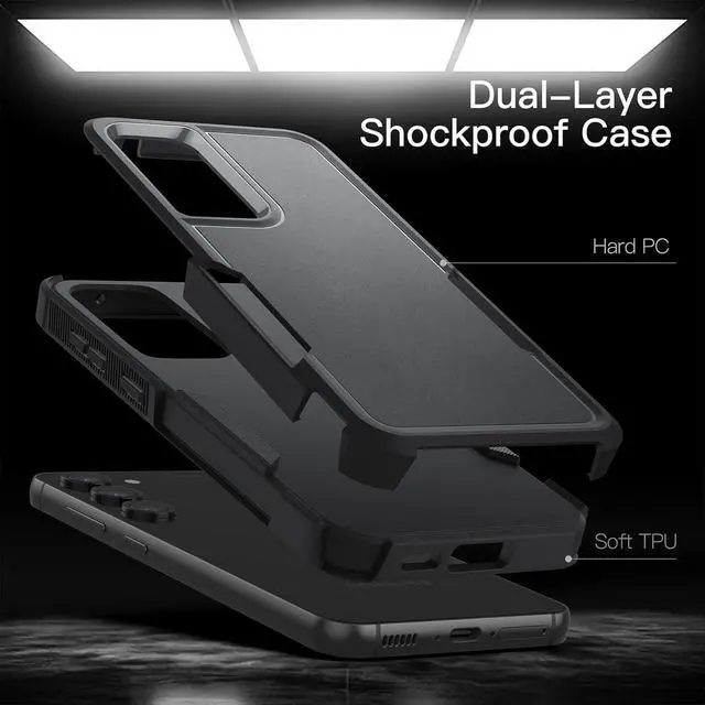 Features: Compatible with Samsung Galaxy S23 FE. Military Standard Shock Test MIL-STD 810G- 516.6 Protection. The case endured 26 drops (at 48in) on all 6 faces, 12 edges and 8 corners of the device and sustained zero damage to the appearance and internal hardware of the phone itself. Featuring a robust multi-layered design, the Tuff Case provides extreme protection for your device. This hard-wearing tough case safe-guards your phone against whatever life can throw at, keeping it secure at all times even in the most extreme of conditions. A soft rubberized TPU inner core tightly grips to your phone while absorbs shock and cushions the phone from drops and impact. Patented hybrid case with ridge polycarbonate hard shell for armor-like protection. Raised front bezel and camera opening prevent scratches to the screen and camera lens. Textured rubbery interior for impact resistant protection. Intuitive button covers for a tactile experience. Precise cutouts provide full access to your phone’ s important features, ports and buttons.