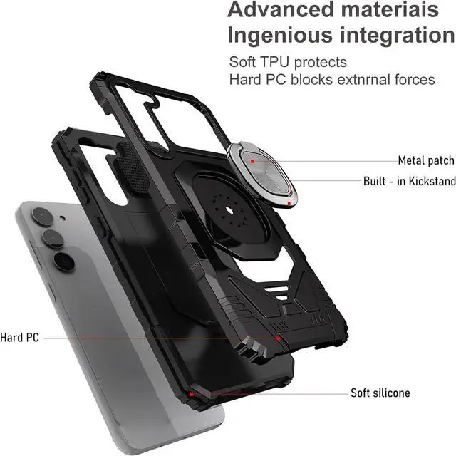 Intuitive button covers for a tactile experience. Enjoy magnetic mount compatibility, as the ring holder also functions as a built-in metal plate. Cut-outs for all the features and ports so you'll never need to take the case off.