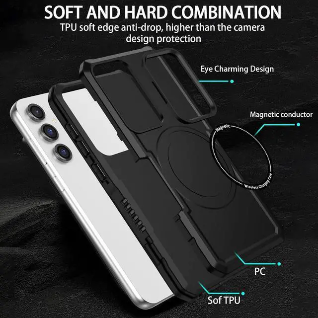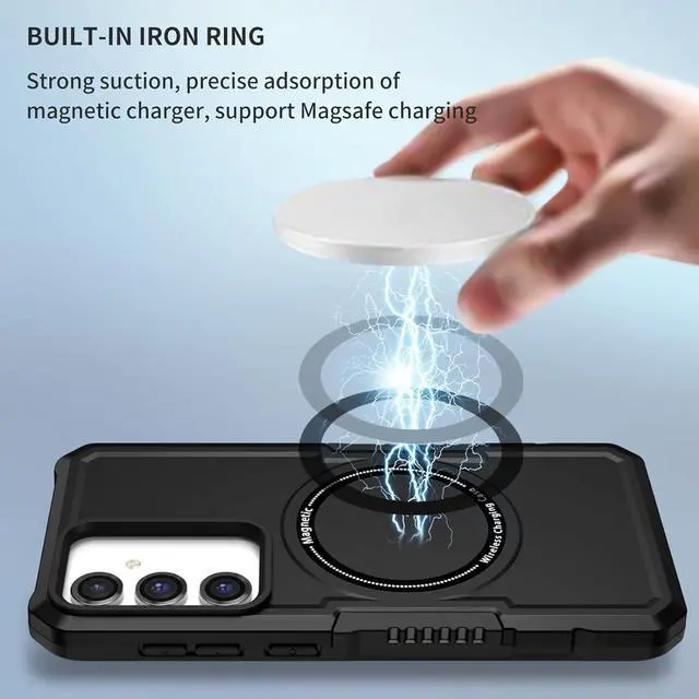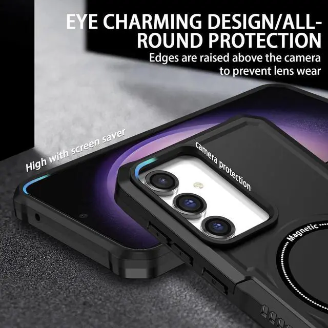 Features: Compatible with Samsung Galaxy S23 FE. Extensively drop tested, so you can feel reassured that your device is well protected. Featuring a robust multi-layered design, the case provides extreme protection for your device. This hard-wearing tough case safe-guards your phone against whatever life can throw at, keeping it secure at all times even in the most extreme of conditions. Reinforced cushion corners provide excellent protection where it's most needed. A soft rubberized TPU inner core tightly grips to your phone while absorbs shock and cushions the phone from drops and impact. Patented hybrid case with ridge polycarbonate hard shell for armor-like protection. Non-slip side grip help you from dropping your phone, providing comfortable grip in your hand. Raised front bezel and camera opening prevent scratches to the screen and camera lens. Textured rubbery interior for impact resistant protection. Intuitive button covers for a tactile experience. Built-In MagSafe magnetic ring, and your phone is ready for the snap-on/snap-off satisfaction of MagSafe magnetic wireless charging, magnetic ring mounting, and a whole world of swappable magnetic accessories. Precise cutouts provide full access to your phone’ s important features, ports and buttons.