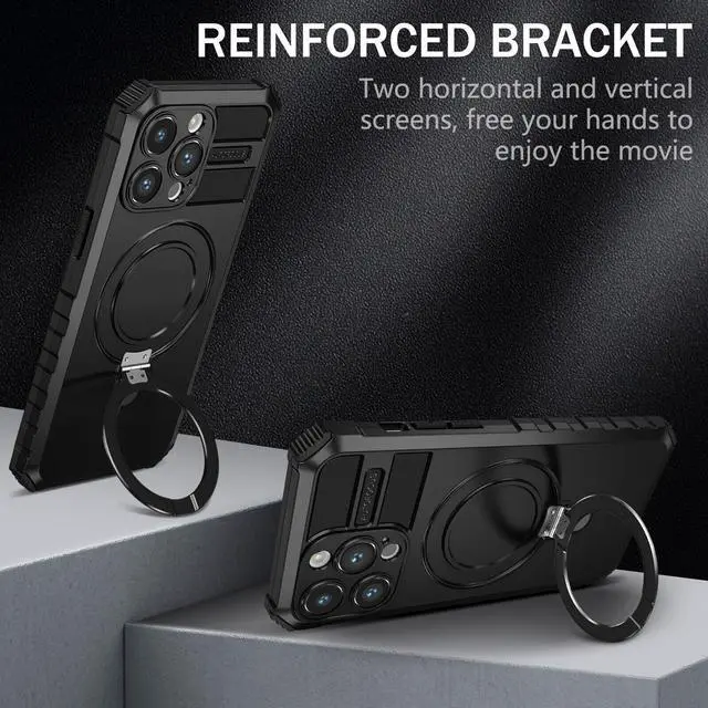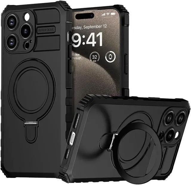 Features: Compatible with Apple iPhone 15. Designed to interact with Apple’ s MagSafe ecosystem. Built-in magnetic ring for strengthened MagSafe connections. Compatible with Apple MagSafe chargers and accessories so you can power up without removing the case. Built-in MagSafe kickstand doubles as ring holder. Extensively drop tested, so you can feel reassured that your device is well protected. Featuring a robust multi-layered design, the case provides extreme protection for your device. This hard-wearing tough case safe-guards your phone against whatever life can throw at, keeping it secure at all times even in the most extreme of conditions. Reinforced cushion corners provide excellent protection where it's most needed. A soft rubberized TPU inner core tightly grips to your phone while absorbs shock and cushions the phone from drops and impact. Patented hybrid case with ridge polycarbonate hard shell for armor-like protection. Non-slip grooved design provides excellent grip. Front bumpers raised slightly above your screen act to protect your screen when placed face down or dropped. Raised camera cut-out with integrated camera lens bumper protector protects the lens from scratches when placing your phone on flat surface.