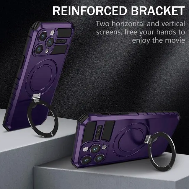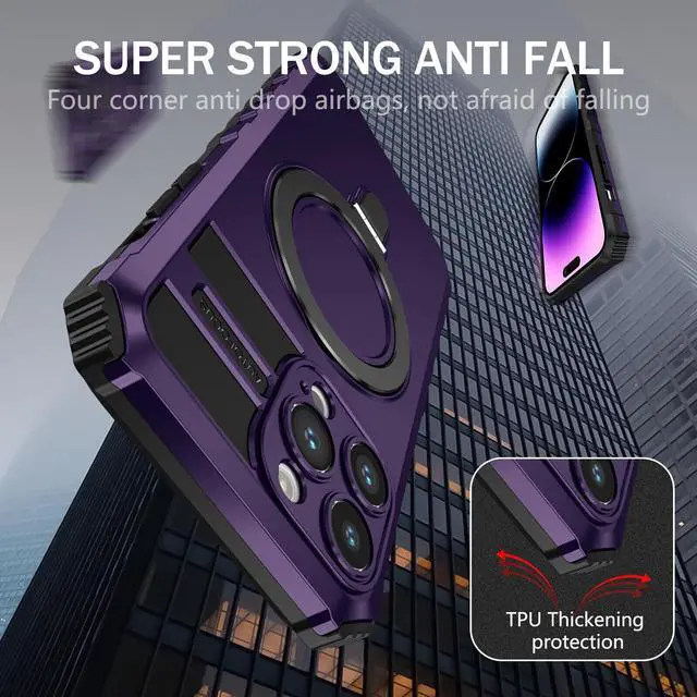 Features: Compatible with Apple iPhone 15 Pro. Designed to interact with Apple’ s MagSafe ecosystem. Built-in magnetic ring for strengthened MagSafe connections. Compatible with Apple MagSafe chargers and accessories so you can power up without removing the case. Built-in MagSafe kickstand doubles as ring holder. Extensively drop tested, so you can feel reassured that your device is well protected. Featuring a robust multi-layered design, the case provides extreme protection for your device. This hard-wearing tough case safe-guards your phone against whatever life can throw at, keeping it secure at all times even in the most extreme of conditions. Reinforced cushion corners provide excellent protection where it's most needed. A soft rubberized TPU inner core tightly grips to your phone while absorbs shock and cushions the phone from drops and impact. Patented hybrid case with ridge polycarbonate hard shell for armor-like protection. Non-slip grooved design provides excellent grip. Front bumpers raised slightly above your screen act to protect your screen when placed face down or dropped. Raised camera cut-out with integrated camera lens bumper protector protects the lens from scratches when placing your phone on flat surface.