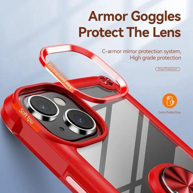 Features: Compatible with Apple iPhone 15. Extensively drop tested, so you can feel reassured that your device is well protected. Crystal clear case provides a slim fitting stylish design and reinforced corner shock protection against damage, keeping your device looking great at all time. Made from reinforced bonded thermopolyurethane and optical grade polycarbonate materials, which makes it flexible enough to absorb punishment but hard enough to resist potential damage. Designed to be slim, lightweight and strong - so you can be assured that this case will add virtually no extra bulk to your phone and will still fit in your pocket with ease. Ring holder for extra drop protection - in more ways than one. The built-it ring features a rotating design to ensure a comfortable grip at any angle. Flip the Ring out and it doubles as a kickstand to take your binge-watching experience to the next level. Raised bezels on the case protects your phone's screen and camera from scratches. Anti-yellow 100% clear case. It withstands the test of time and has breathtakingly high resistance to UV rays, sweat and oxidation of cosmetics.