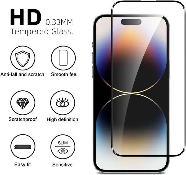 Package Includes: Edge-to-Edge Full Coverage Tempered Glass Screen Protector. Tempered Glass Camera Lens Protector.