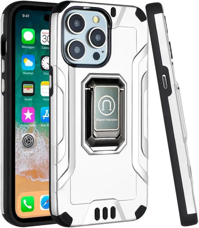 Layer 2: One-piece custom molded polycarbonate shell. The air cushion corners reduces impact force. The back of the case has a built-in extremely practical handle, Ring, which can be put on the finger to hold the phone more securely in your hand. Pull the ring out and have a handy viewing stand to comfortably watch your favorite show. The interior adopts a honeycomb pattern design that absorbs shocks and impacts, also help dissipate heat to prevent overheating. Unique mix material hybrid design provides excellent shock absorption and scratch protection. Raised bezels on the case protects your screen and camera from scratches. Textured grid finishing for improved grip. 9H hardness tempered glass screen protector prevents scratches without compromising sensitivity. Enjoy magnetic mount compatibility, as the ring holder also functions as a built-in metal plate. Antimicrobial case protection. Precise cutouts provide full access to your phone’ s important features, ports and buttons.