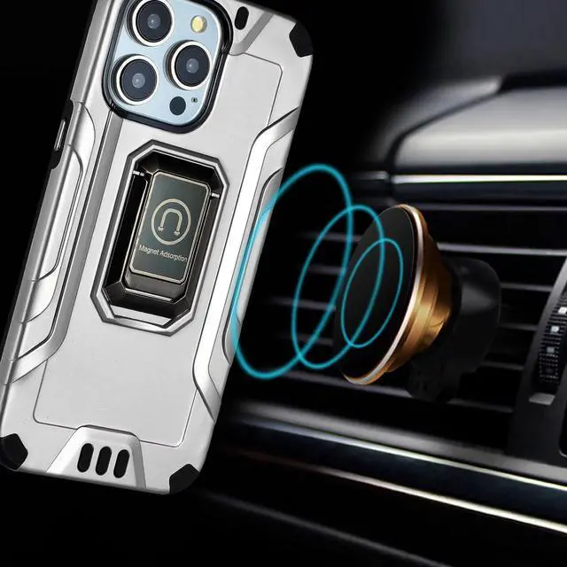 Layer 2: One-piece custom molded polycarbonate shell. The air cushion corners reduces impact force. The back of the case has a built-in extremely practical handle, Ring, which can be put on the finger to hold the phone more securely in your hand. Pull the ring out and have a handy viewing stand to comfortably watch your favorite show. The interior adopts a honeycomb pattern design that absorbs shocks and impacts, also help dissipate heat to prevent overheating. Unique mix material hybrid design provides excellent shock absorption and scratch protection. Raised bezels on the case protects your screen and camera from scratches. Textured grid finishing for improved grip. 9H hardness tempered glass screen protector prevents scratches without compromising sensitivity. Enjoy magnetic mount compatibility, as the ring holder also functions as a built-in metal plate. Antimicrobial case protection. Precise cutouts provide full access to your phone’ s important features, ports and buttons.