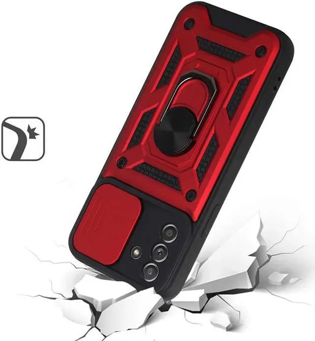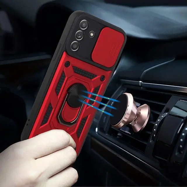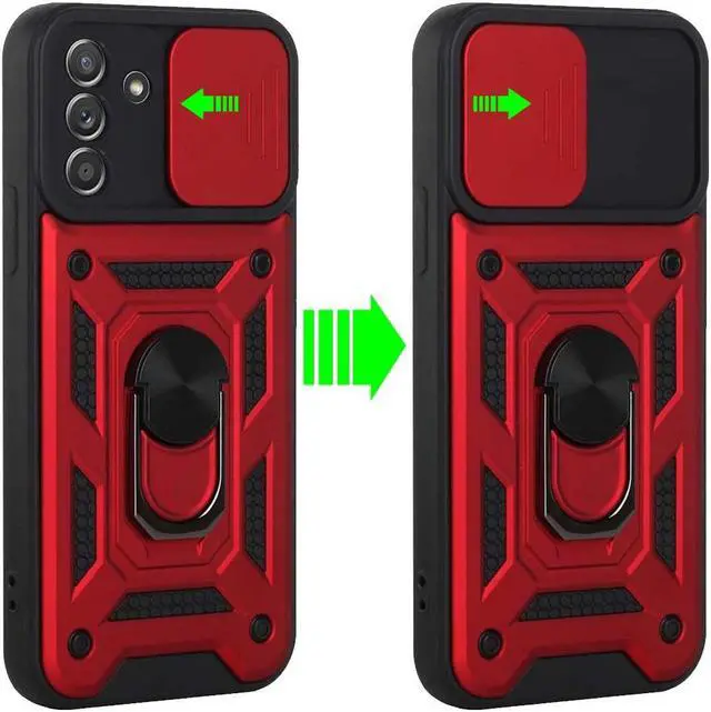 Features: Compatible with Samsung Galaxy A14 5G. Extensively drop tested, so you can feel reassured that your device is well protected. Stylish, minimalist protection for your smartphone. Premium dual-material construction with polycarbonate backing and TPU perimeter creates a sleek profile without sacrificing protection. Ring holder for extra drop protection - in more ways than one. The built-it ring features a 180 & 360 degree rotating design to ensure a comfortable grip at any angle. Flip the ring out and it doubles as a kickstand to take your binge-watching experience to the next level. Polycarbonate panel slides to lock over camera area protecting lenses as well as promoting camera security. Impact-absorbing TPU perimeter guards the device against bumps and drops. This case is effortlessly easy to install and looks great on your phone. Front bumpers raised slightly above your screen act to protect your screen when placed face down or dropped. Raised camera cut-out protects the lens from scratches when placing your phone on flat surface. Enjoy magnetic mount compatibility, as the ring holder also functions as a built-in metal plate. Precisely cutouts to preserve full use of volume buttons, charger, camera, microphone, and all other ports.