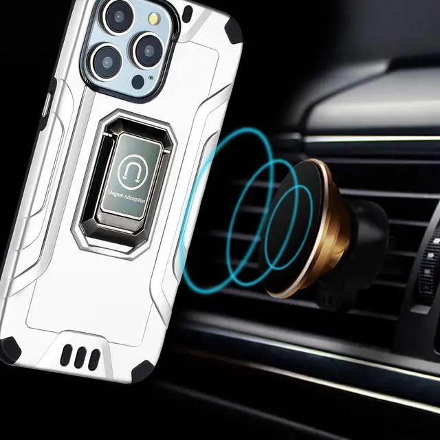 Layer 2: One-piece custom molded polycarbonate shell. The air cushion corners reduces impact force. The back of the case has a built-in extremely practical handle, Ring, which can be put on the finger to hold the phone more securely in your hand. Pull the ring out and have a handy viewing stand to comfortably watch your favorite show. The interior adopts a honeycomb pattern design that absorbs shocks and impacts, also help dissipate heat to prevent overheating. Unique mix material hybrid design provides excellent shock absorption and scratch protection. Raised bezels on the case protects your screen and camera from scratches. Textured grid finishing for improved grip. 9H hardness tempered glass screen protector prevents scratches without compromising sensitivity. Enjoy magnetic mount compatibility, as the ring holder also functions as a built-in metal plate. Antimicrobial case protection. Precise cutouts provide full access to your phone’ s important features, ports and buttons.
