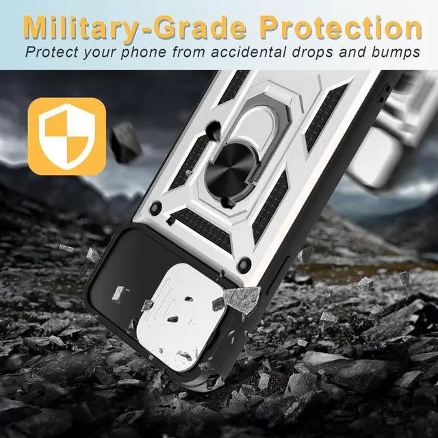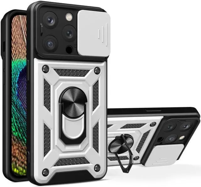 Features: Compatible with Apple iPhone 15 Pro Max. Extensively drop tested, so you can feel reassured that your device is well protected. Stylish, minimalist protection for your smartphone. Premium dual-material construction with polycarbonate backing and TPU perimeter creates a sleek profile without sacrificing protection. Ring holder for extra drop protection - in more ways than one. The built-it ring features a 180 and 360 degree rotating design to ensure a comfortable grip at any angle. Flip the Ring out and it doubles as a kickstand to take your binge-watching experience to the next level. Polycarbonate panel slides to lock over camera lens area protecting lenses as well as promoting camera security. Impact-absorbing TPU perimeter guards the device against bumps and drops. This case is effortlessly easy to install and looks great on your phone. Front bumpers raised slightly above your screen act to protect your screen when placed face down or dropped. Raised camera cut-out protects the lens from scratches when placing your phone on flat surface. Enjoy magnetic mount compatibility, as the ring holder also functions as a built-in metal plate. Antimicrobial case protection.