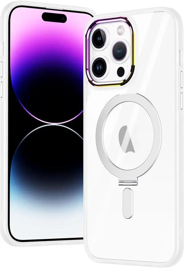 Features: Compatible with Apple iPhone 15 Pro. Designed to interact with Apple’ s MagSafe ecosystem. Magnetic ring for strengthened MagSafe connections. Compatible with Apple MagSafe chargers and accessories so you can power up without removing the case. Built-in kickstand doubles as ring holder. Protect your phone from scratches and knocks! Featuring a premium quality eco-friendly material that is sturdy enough to protect your device, yet flexible enough to easily attach or remove your phone from the case. Crystal clear transparency flaunts original phone design. Raised bezels lift screen and camera off flat surfaces. Truly clear. No milky hues like other cases. Protects your phone from dust, dirt, scratches and damages. Pronounced buttons with tactile feedback and added detailing. Precisely cutouts to preserve full use of volume buttons, charger, camera, microphone, and all other ports.