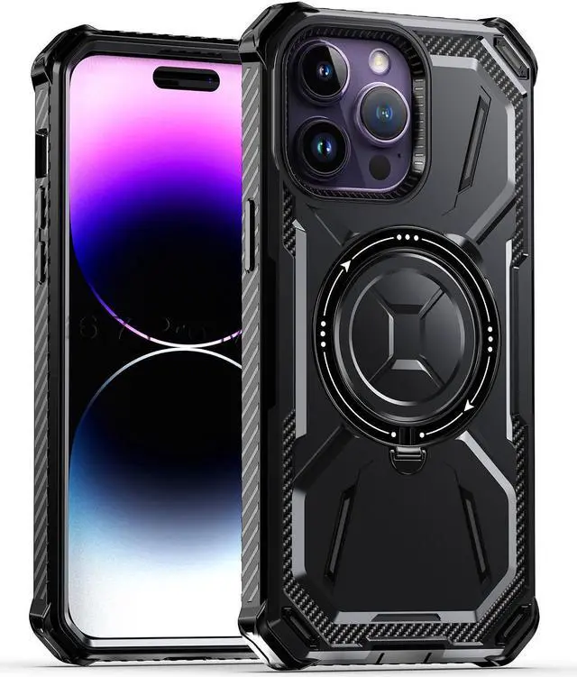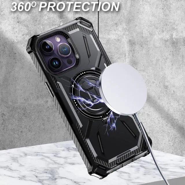 Features: Compatible with Apple iPhone 15 Pro Max. Designed to interact with Apple’ s MagSafe ecosystem. Magnetic ring for strengthened MagSafe connections. Compatible with Apple MagSafe chargers and accessories so you can power up without removing the case. Built-in kickstand doubles as ring holder.