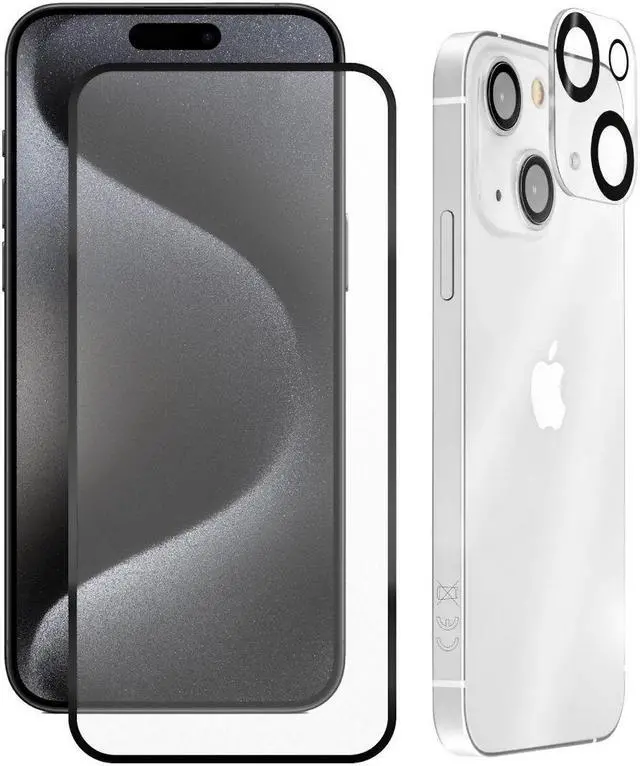 Keep your Apple iPhone 15 Plus looking and feeling great. A clear touch screen, clean camera, and stunning features make the iPhone 15 Plus a phone to love and protect. You won’ t worry about accidentally scratching or bumping your stylish iPhone 15 Plus's screen and camera when you safeguard it with the Tempered Glass Protector Combo Pack.