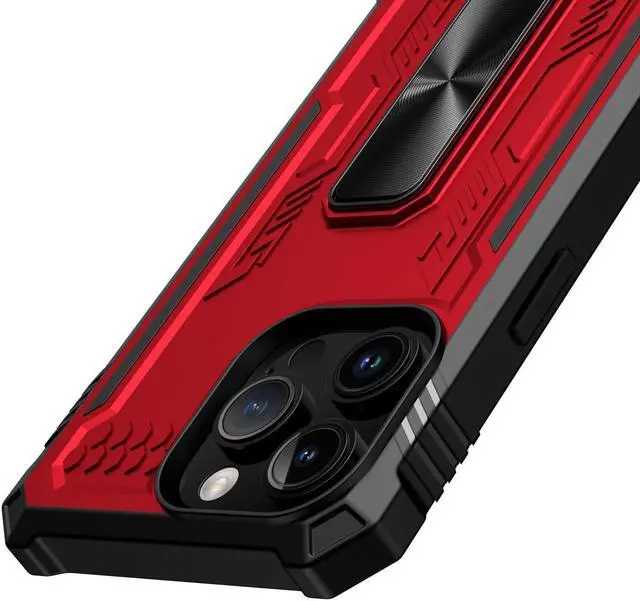 Features: Compatible with Apple iPhone 15 Pro Max. Military Standard Shock Test MIL-STD 810G- 516.6 Protection. The case endured 26 drops (at 48in) on all 6 faces, 12 edges and 8 corners of the device and sustained zero damage to the appearance and internal hardware of the phone itself. Built into the case's corners are specially design air pockets that absorb impact and dissipate force away from your phone. Located at the back of the case is a super-convenient flip-out kickstand. Folding completely flat when not in use, the kickstand can be called upon at will, allowing you to effortlessly watch media at any time and in any place. Premium dual-material construction with polycarbonate backing and TPU perimeter creates a sleek profile without sacrificing protection. Impact-absorbing TPU perimeter guards the device against bumps and drops. Front bumpers raised slightly above your screen act to protect your screen when placed face down or dropped. Raised camera cut-out protects the lens from scratches when placing your phone on flat surface. Intuitive button covers for a tactile experience. Antimicrobial case protection. Precisely cutouts to preserve full use of volume buttons, charger, camera, microphone, and all other ports.