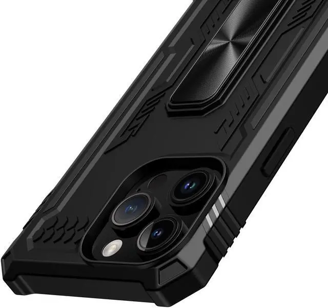 Features: Compatible with Apple iPhone 15 Pro. Military Standard Shock Test MIL-STD 810G- 516.6 Protection. The case endured 26 drops (at 48in) on all 6 faces, 12 edges and 8 corners of the device and sustained zero damage to the appearance and internal hardware of the phone itself. Built into the case's corners are specially design air pockets that absorb impact and dissipate force away from your phone. Located at the back of the case is a super-convenient flip-out kickstand. Folding completely flat when not in use, the kickstand can be called upon at will, allowing you to effortlessly watch media at any time and in any place. Premium dual-material construction with polycarbonate backing and TPU perimeter creates a sleek profile without sacrificing protection. Impact-absorbing TPU perimeter guards the device against bumps and drops. Front bumpers raised slightly above your screen act to protect your screen when placed face down or dropped. Raised camera cut-out protects the lens from scratches when placing your phone on flat surface. Intuitive button covers for a tactile experience. Antimicrobial case protection. Precisely cutouts to preserve full use of volume buttons, charger, camera, microphone, and all other ports.