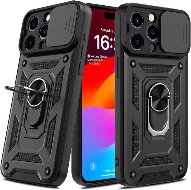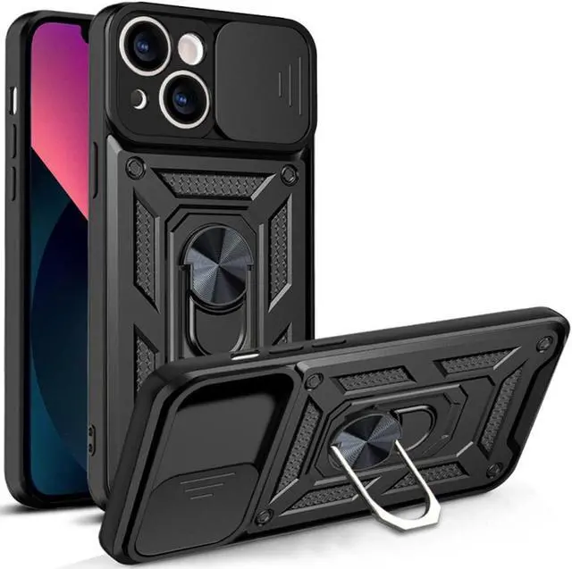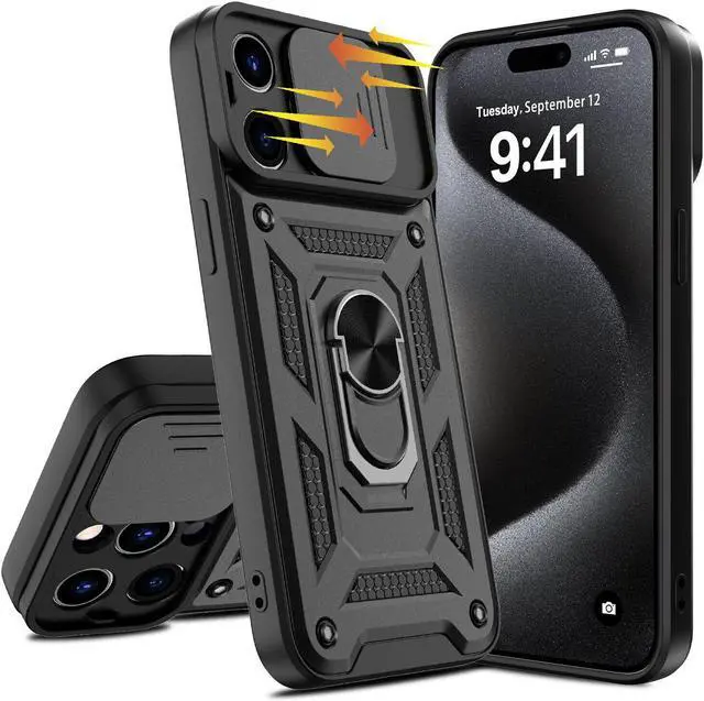 Features: Compatible with Apple iPhone 15. Extensively drop tested, so you can feel reassured that your device is well protected. Stylish, minimalist protection for your smartphone. Premium dual-material construction with polycarbonate backing and TPU perimeter creates a sleek profile without sacrificing protection. Ring holder for extra drop protection - in more ways than one. The built-it ring features a 180 and 360 degree rotating design to ensure a comfortable grip at any angle. Flip the Ring out and it doubles as a kickstand to take your binge-watching experience to the next level. Polycarbonate panel slides to lock over camera lens area protecting lenses as well as promoting camera security. Impact-absorbing TPU perimeter guards the device against bumps and drops. This case is effortlessly easy to install and looks great on your phone. Front bumpers raised slightly above your screen act to protect your screen when placed face down or dropped. Raised camera cut-out protects the lens from scratches when placing your phone on flat surface. Enjoy magnetic mount compatibility, as the ring holder also functions as a built-in metal plate. Antimicrobial case protection. Precisely cutouts to preserve full use of volume buttons, charger, camera, microphone, and all other ports.