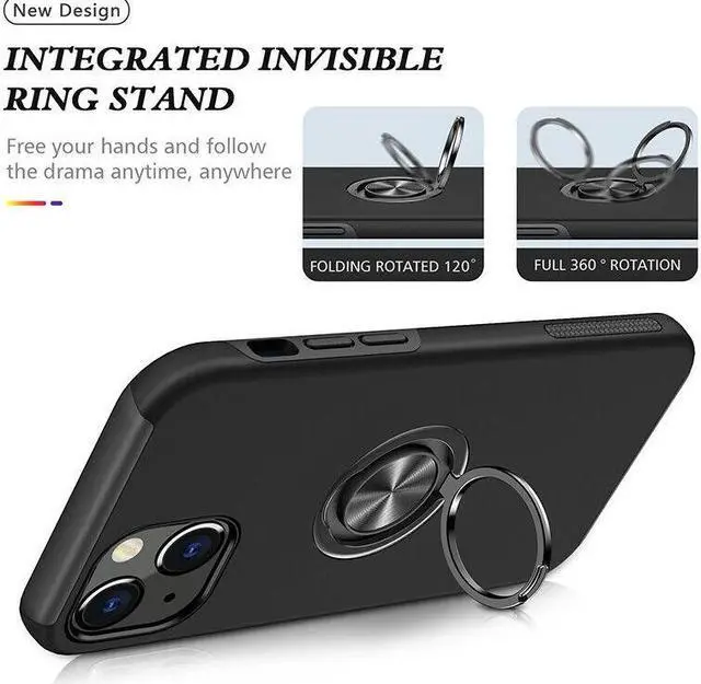 Features: Compatible with Apple iPhone 15. Made from reinforced bonded thermopolyurethane and high quality polycarbonate materials, which makes it flexible enough to absorb punishment but hard enough to resist potential damage. The back of the case has a built-in extremely practical handle, Ring, which can be put on the finger to hold the phone more securely in your hand. Pull the ring out and have a handy viewing stand to comfortably watch your favorite show. Ultra-slim, lightweight and minimal design. Equipped with two-piece design, you can easily pop the case on and off with ease while still feeling ultimately protected. Raised front bezel and camera opening prevent scratches to the screen and camera lens. Get maximum safety and easy access to all buttons and ports from raised bezel edges, shock-absorbing corners, and a non-slip bumper grip. Enjoy magnetic mount compatibility, as the ring holder also functions as a built-in metal plate. Antimicrobial case protection.