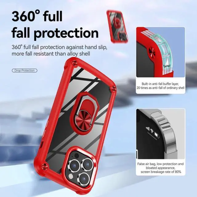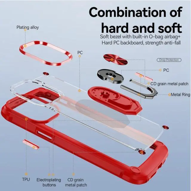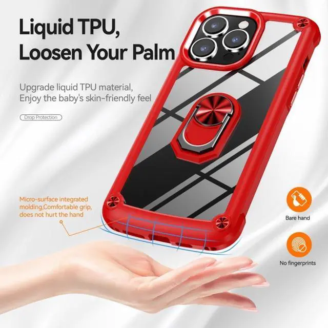 Features: Compatible with Apple iPhone 15 Pro. Extensively drop tested, so you can feel reassured that your device is well protected. Crystal clear case provides a slim fitting stylish design and reinforced corner shock protection against damage, keeping your device looking great at all time. Made from reinforced bonded thermopolyurethane and optical grade polycarbonate materials, which makes it flexible enough to absorb punishment but hard enough to resist potential damage. Designed to be slim, lightweight and strong - so you can be assured that this case will add virtually no extra bulk to your phone and will still fit in your pocket with ease. Ring holder for extra drop protection - in more ways than one. The built-it ring features a rotating design to ensure a comfortable grip at any angle. Flip the Ring out and it doubles as a kickstand to take your binge-watching experience to the next level. Raised bezels on the case protects your phone's screen and camera from scratches. Anti-yellow 100% clear case. It withstands the test of time and has breathtakingly high resistance to UV rays, sweat and oxidation of cosmetics.