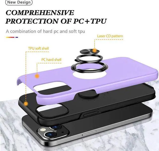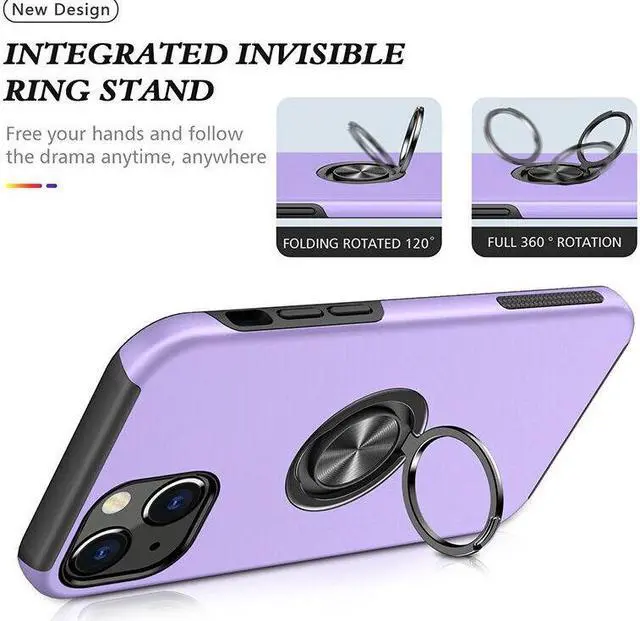 Features: Compatible with Apple iPhone 15. Made from reinforced bonded thermopolyurethane and high quality polycarbonate materials, which makes it flexible enough to absorb punishment but hard enough to resist potential damage. The back of the case has a built-in extremely practical handle, Ring, which can be put on the finger to hold the phone more securely in your hand. Pull the ring out and have a handy viewing stand to comfortably watch your favorite show. Ultra-slim, lightweight and minimal design. Equipped with two-piece design, you can easily pop the case on and off with ease while still feeling ultimately protected. Raised front bezel and camera opening prevent scratches to the screen and camera lens. Get maximum safety and easy access to all buttons and ports from raised bezel edges, shock-absorbing corners, and a non-slip bumper grip. Enjoy magnetic mount compatibility, as the ring holder also functions as a built-in metal plate. Antimicrobial case protection.
