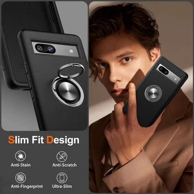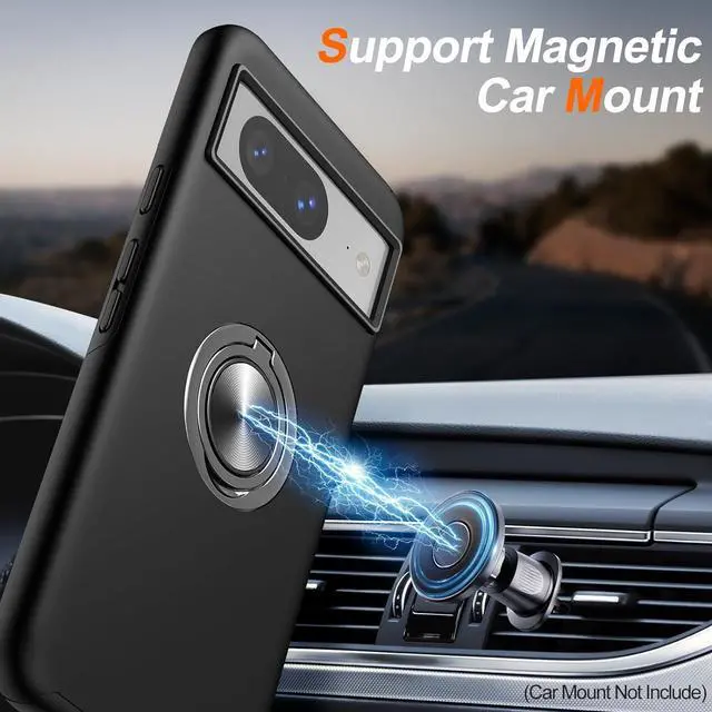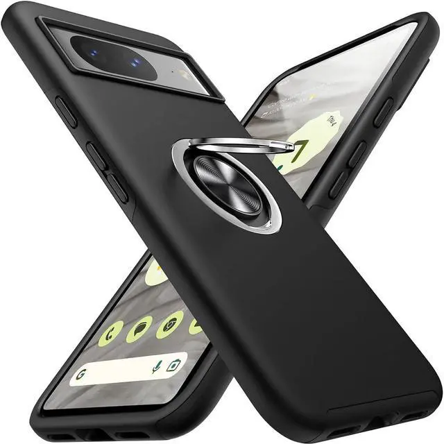 Features: Compatible with Google Pixel 8. Made from reinforced bonded thermopolyurethane and high quality polycarbonate materials, which makes it flexible enough to absorb punishment but hard enough to resist potential damage. 360° rotating ring grip. Horizontal kickstand. Ultra-slim, lightweight and minimal design. Equipped with two-piece design, you can easily pop the case on and off with ease while still feeling ultimately protected. Get maximum safety and easy access to all buttons and ports from raised bezel edges, shock-absorbing corners, and a non-slip bumper grip. Enjoy magnetic mount compatibility, as the ring holder also functions as a built-in metal plate.