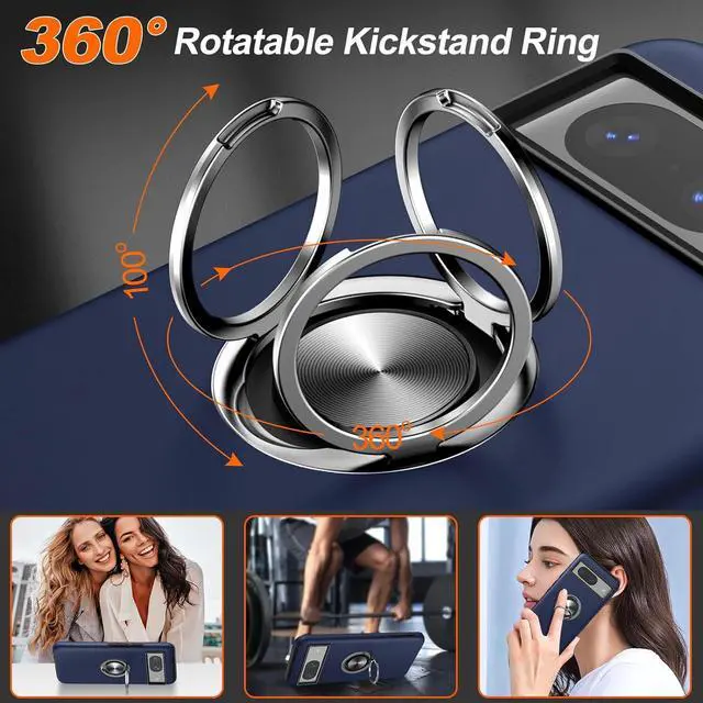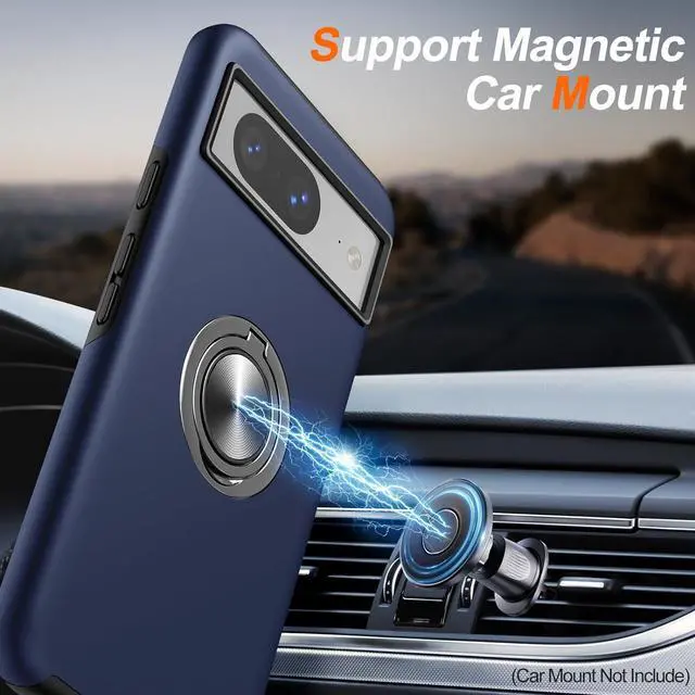 Features: Compatible with Google Pixel 8. Made from reinforced bonded thermopolyurethane and high quality polycarbonate materials, which makes it flexible enough to absorb punishment but hard enough to resist potential damage. 360° rotating ring grip. Horizontal kickstand. Ultra-slim, lightweight and minimal design. Equipped with two-piece design, you can easily pop the case on and off with ease while still feeling ultimately protected. Get maximum safety and easy access to all buttons and ports from raised bezel edges, shock-absorbing corners, and a non-slip bumper grip. Enjoy magnetic mount compatibility, as the ring holder also functions as a built-in metal plate.