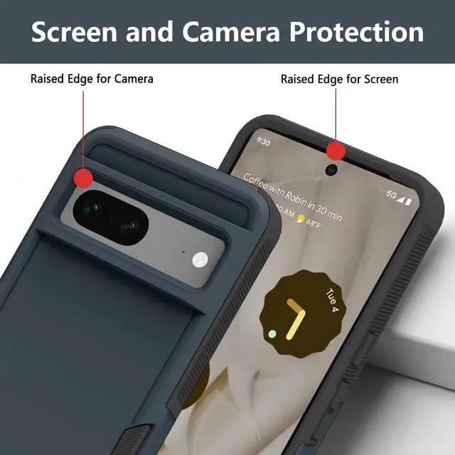 Features: Compatible with Google Pixel 8. Military Standard Shock Test MIL-STD 810G- 516.6 Protection. The case endured 26 drops (at 48in) on all 6 faces, 12 edges and 8 corners of the device and sustained zero damage to the appearance and internal hardware of the phone itself. Featuring a robust multi-layered design, the Tuff Case provides extreme protection for your device. This hard-wearing tough case safe-guards your phone against whatever life can throw at, keeping it secure at all times even in the most extreme of conditions. A soft rubberized TPU inner core tightly grips to your phone while absorbs shock and cushions the phone from drops and impact. Patented hybrid case with ridge polycarbonate hard shell for armor-like protection. Raised front bezel and camera opening prevent scratches to the screen and camera lens. Textured rubbery interior for impact resistant protection. Intuitive button covers for a tactile experience. Precise cutouts provide full access to your phone’ s important features, ports and buttons.