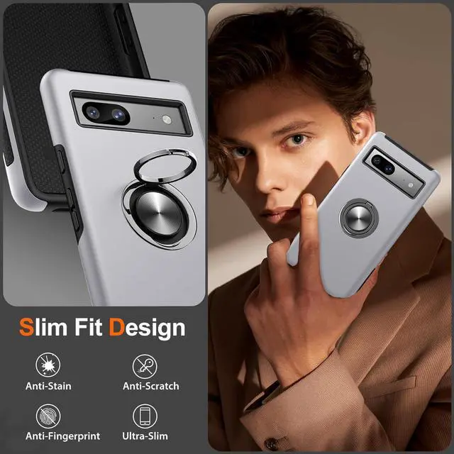 Features: Compatible with Google Pixel 8. Made from reinforced bonded thermopolyurethane and high quality polycarbonate materials, which makes it flexible enough to absorb punishment but hard enough to resist potential damage. 360° rotating ring grip. Horizontal kickstand. Ultra-slim, lightweight and minimal design. Equipped with two-piece design, you can easily pop the case on and off with ease while still feeling ultimately protected. Get maximum safety and easy access to all buttons and ports from raised bezel edges, shock-absorbing corners, and a non-slip bumper grip. Enjoy magnetic mount compatibility, as the ring holder also functions as a built-in metal plate.