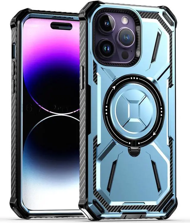 MagSafe Compatible Military Grade Hybrid Case with Kickstand Ring Holder for iPhone 15 Pro - Blue