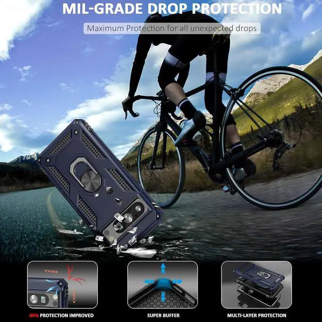 Features: Compatible with Google Pixel 8 Pro. Military Standard Shock Test MIL-STD 810G- 516.6 Protection. The case endured 26 drops (at 48in) on all 6 faces, 12 edges and 8 corners of the device and sustained zero damage to the appearance and internal hardware of the phone itself. Made from a special strong and lightweight durable material, providing you with long lasting protection for your smartphone without making it cumbersome. Ring holder for extra drop protection - in more ways than one. The built-it ring features a 180 & 360 degree rotating design to ensure a comfortable grip at any angle. Flip the ring out and it doubles as a kickstand to take your binge-watching experience to the next level. Unique mix material hybrid design.