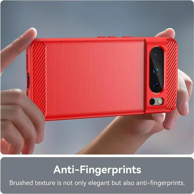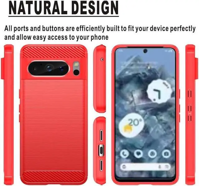Flexible rugged casing with a premium matte finish non-slip carbon fiber and brushed metal design, the Brushed Metal Design TPU Case keeps your Google Pixel 8 Pro protected with air cushion in all corners for added protection against drops, while raised edges provides bolstered screen protection.