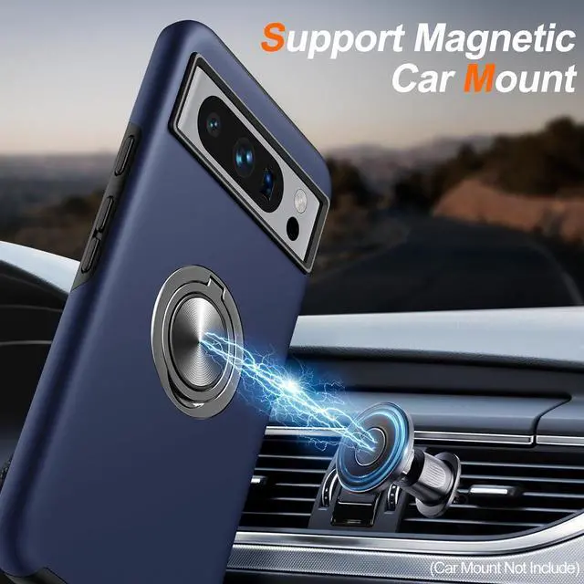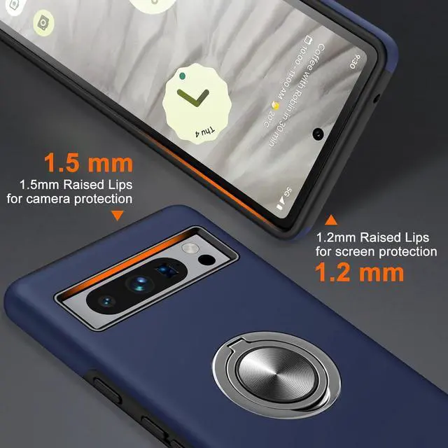 Features: Compatible with Google Pixel 8 Pro. Made from reinforced bonded thermopolyurethane and high quality polycarbonate materials, which makes it flexible enough to absorb punishment but hard enough to resist potential damage. 360° rotating ring grip. Horizontal kickstand. Ultra-slim, lightweight and minimal design. Equipped with two-piece design, you can easily pop the case on and off with ease while still feeling ultimately protected. Get maximum safety and easy access to all buttons and ports from raised bezel edges, shock-absorbing corners, and a non-slip bumper grip. Enjoy magnetic mount compatibility, as the ring holder also functions as a built-in metal plate.