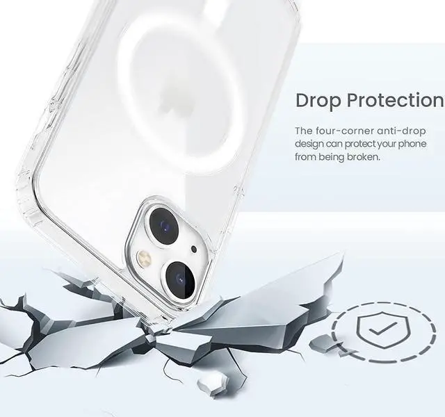 Features: Compatible with Apple iPhone 15 Plus. Designed to interact with Apple’ s MagSafe ecosystem. Built-in magnetic ring for strengthened MagSafe connections. Compatible with Apple MagSafe chargers and accessories so you can power up without removing the case. Protect your phone from scratches and knocks! Featuring a premium quality eco-friendly material that is sturdy enough to protect your device, yet flexible enough to easily attach or remove your phone from the case. Crystal clear transparency flaunts original phone design. Raised bezels lift screen and camera off flat surfaces. Truly clear. No milky hues like other cases. Protects your phone from dust, dirt, scratches and damages. Pronounced buttons with tactile feedback and added detailing. Precisely cutouts to preserve full use of volume buttons, charger, camera, microphone, and all other ports.