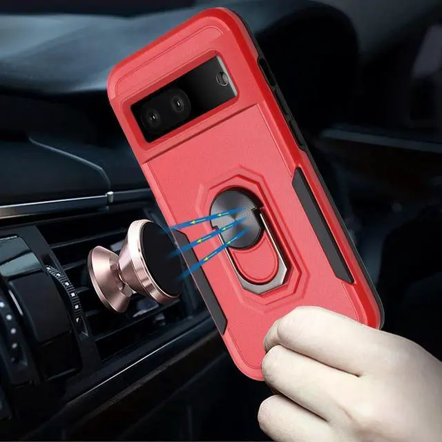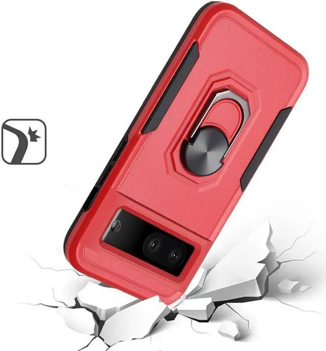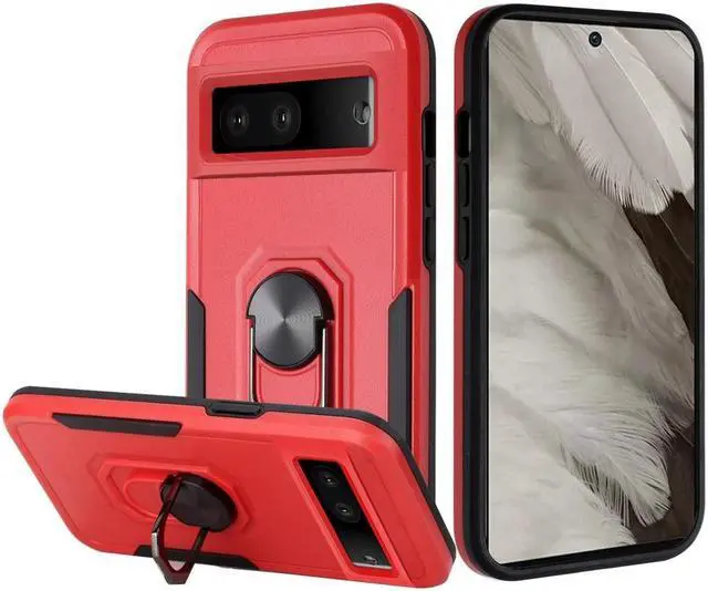 Features: Compatible with Google Pixel 7a. Military Standard Shock Test MIL-STD 810G- 516.6 Protection. The case endured 26 drops (at 48in) on all 6 faces, 12 edges and 8 corners of the device and sustained zero damage to the appearance and internal hardware of the phone itself. Featuring a robust multi-layered design, the Tuff Case provides extreme protection for your device. This hard-wearing tough case safe-guards your phone against whatever life can throw at, keeping it secure at all times even in the most extreme of conditions. A soft rubberized TPU inner core tightly grips to your phone while absorbs shock and cushions the phone from drops and impact. Patented hybrid case with ridge polycarbonate hard shell for armor-like protection. The back of the case has a built-in extremely practical handle, Ring, which can be put on the finger to hold the phone more securely in your hand. Pull the ring out and have a handy viewing stand to comfortably watch your favorite show. Raised front bezel and camera opening prevent scratches to the screen and camera lens. Textured rubbery interior for impact resistant protection.