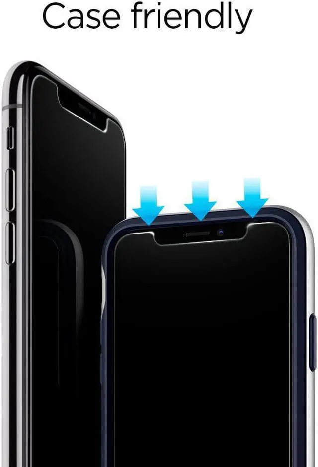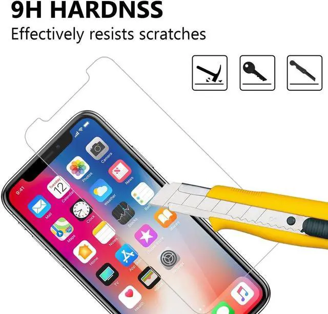 Surface hardness: 9H. Anti-shatter film with silicone coating. Compatible with Apple iPhone 11 Pro / iPhone XS / iPhone X.