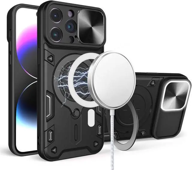 Features: Compatible with Apple iPhone 15 Pro Max. Designed to interact with Apple’ s MagSafe ecosystem. Built-in magnetic ring for strengthened MagSafe connections. Compatible with Apple MagSafe chargers and accessories so you can power up without removing the case. Built-in MagSafe kickstand doubles as ring holder. Extensively drop tested, so you can feel reassured that your device is well protected. Stylish, minimalist protection for your smartphone. Premium dual-material construction with polycarbonate backing and TPU perimeter creates a sleek profile without sacrificing protection. Polycarbonate panel slides to lock over camera area protecting lenses as well as promoting camera security. Impact-absorbing TPU perimeter guards the device against bumps and drops. This case is effortlessly easy to install and looks great on your phone. Front bumpers raised slightly above your screen act to protect your screen when placed face down or dropped. Raised camera cut-out protects the lens from scratches when placing your phone on flat surface. Precisely cutouts to preserve full use of volume buttons, charger, camera, microphone, and all other ports.